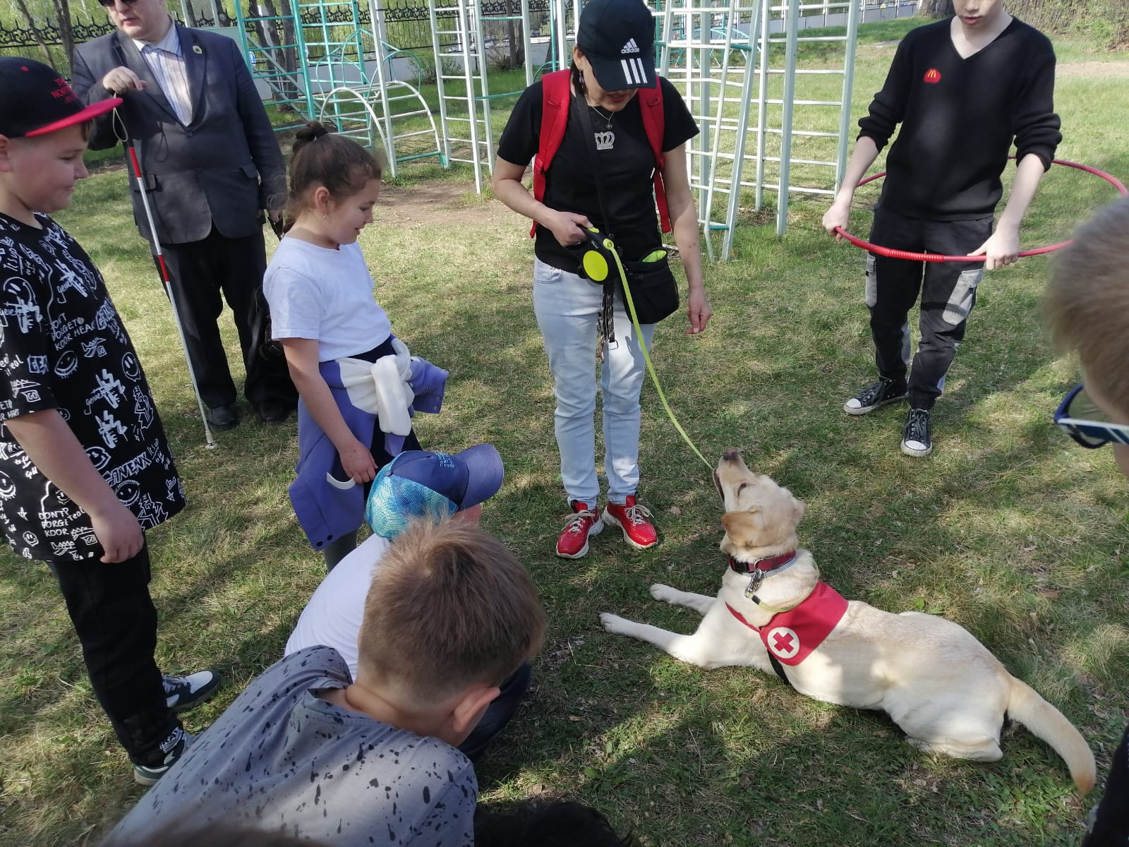 28 апреля 2023 года члены Набережночелнинского общества слепых провели выездное мероприятие для учащихся младшего блока, приуроченное международному дню собак - поводырей, который состоялся 26 апреля.