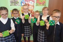 В преддверии 8 Марта в 1б классе работала творческая мастерская. Ребята изготовили цветочные полянки для своих любимых мамочек, а за одно и научились пришивать пуговички.