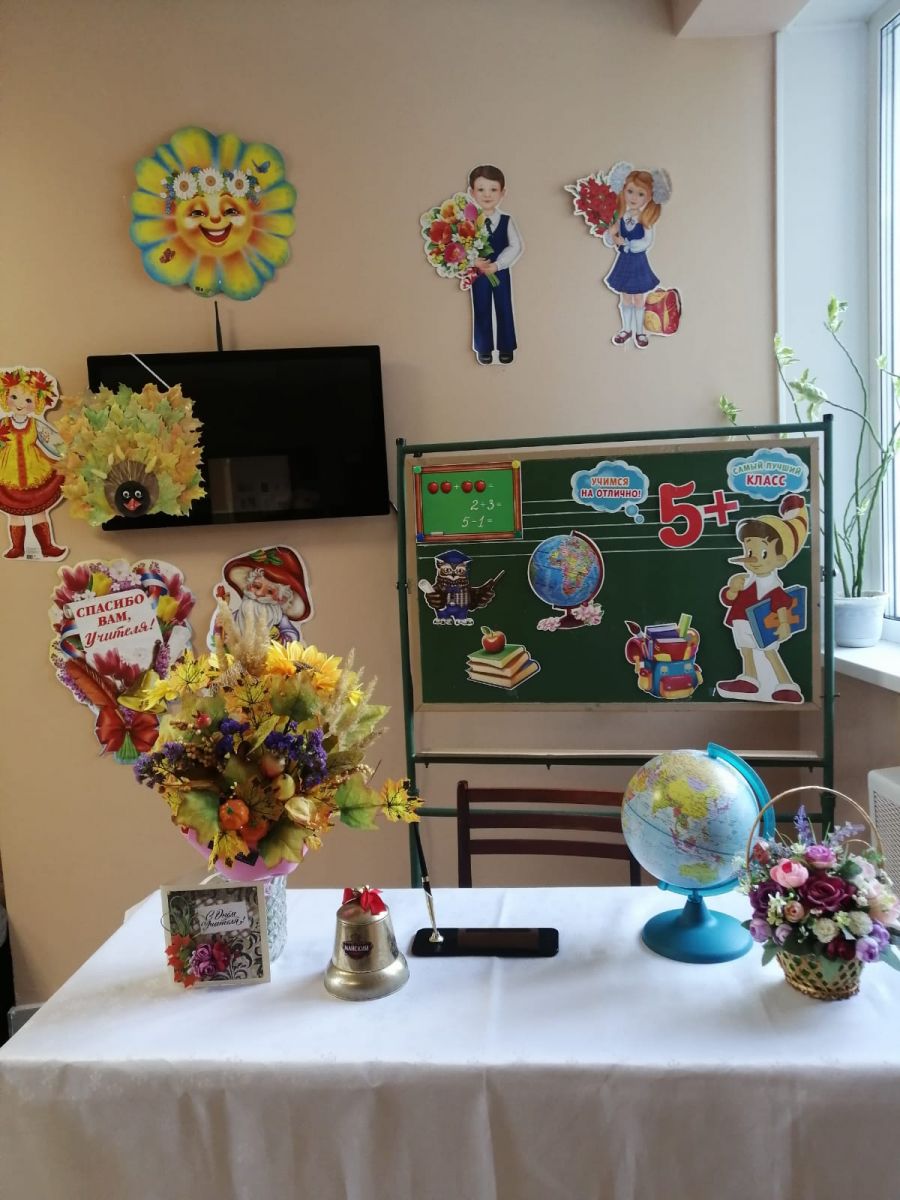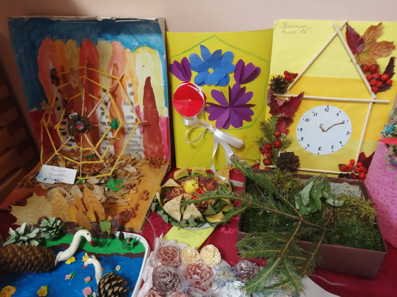 В ожидании праздника "День Учителя" учащиеся подготовили выставку рисунков "Осеннее настроение", с родителями смастерили декоративные работы "Дары осени", министры ШУС оформили фотозону.