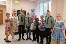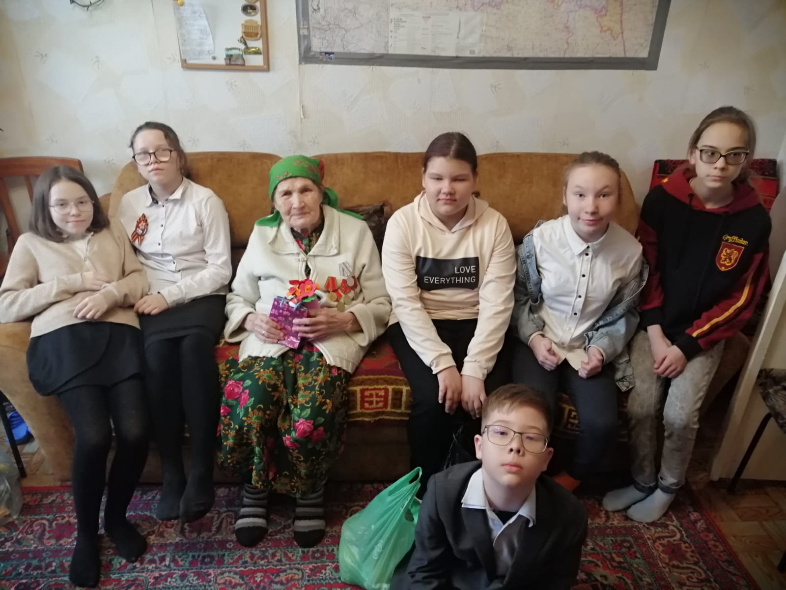 Учащиеся школы поздравили тружеников тыла с великим праздником День Победы. Ребята подготовили песни, стихи, вручили открытки и продуктовые наборы.