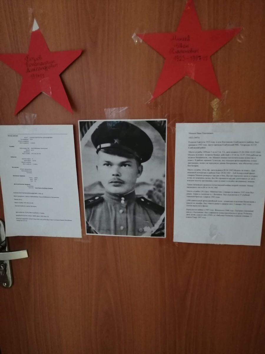 Учащиеся и коллектив школы в преддверии праздника Великой Победы приняли участие в акциях "Окна Победы", "Звезда Героя". Руководитель школьного музея Кокурина О. Н. оформила экспозицию "И помнит мир спасенный..."