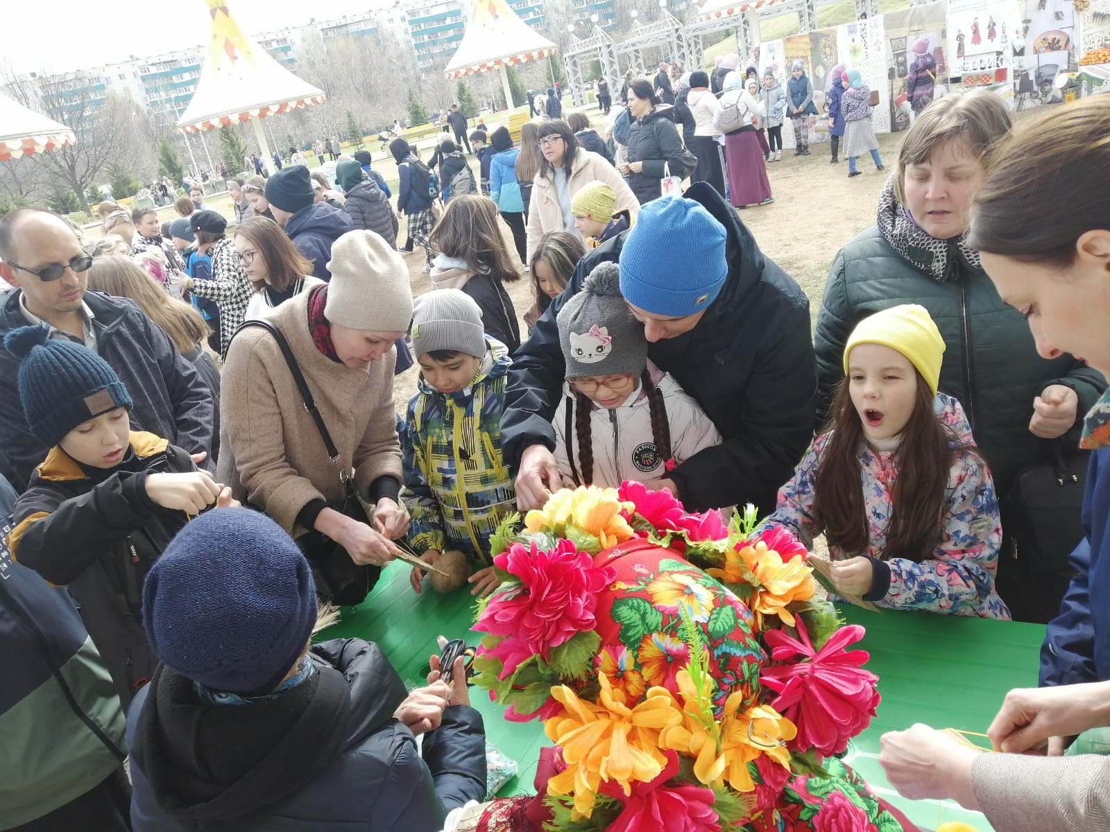Учащиеся и родители приняли активное участие в мастер-классах в Парке Победы. Было очень здорово, праздничная атмосфера, конкурсы, призы, алладьи, конфеты, шары!!!