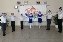 Учащиеся 4в,4г классов приняли участие в городском конкурсе "Без бергә". Танец "Матросский" под руководством учителя ритмики Атыповой Л. В.