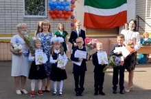 Сегодня в школе прошли торжественные линейки, посвященные Дню знаний. В этом году линейки прошли в необычной обстановке. Для 1-5ых классов торжественная линейка проводилась отдельно от среднего и старшего звена. По традиции первым с началом учебного года поздравила директор школы Гарифуллина Ильгиза Ирековна.
