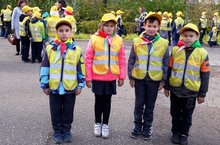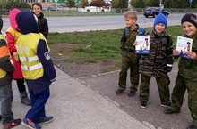 Отряд ЮИД "Светофорик" в профилактическом рейде на перекрёстке.