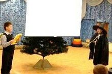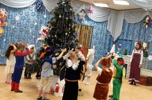 Учащиеся 1-4 классов на новогоднем представлении "Маленькая Баба Яга" в детской школе театрального искусства.
