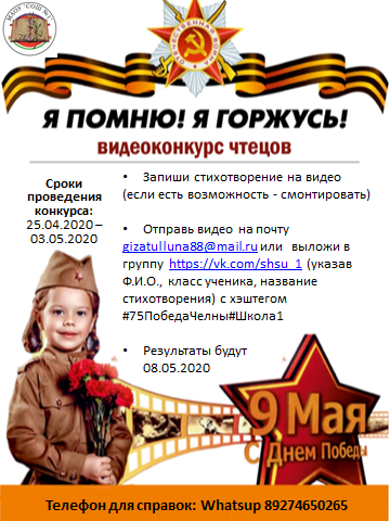 Видеоконкурс чтецов "Я помню! Я горжусь" 25.04.2020