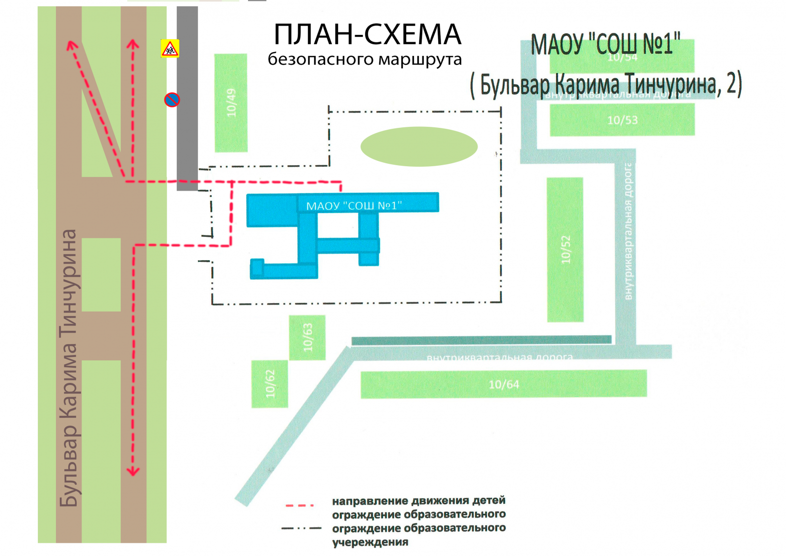 План-схема безопасного маршрута МАОУ "Средняя общеобразовательная школа №1"