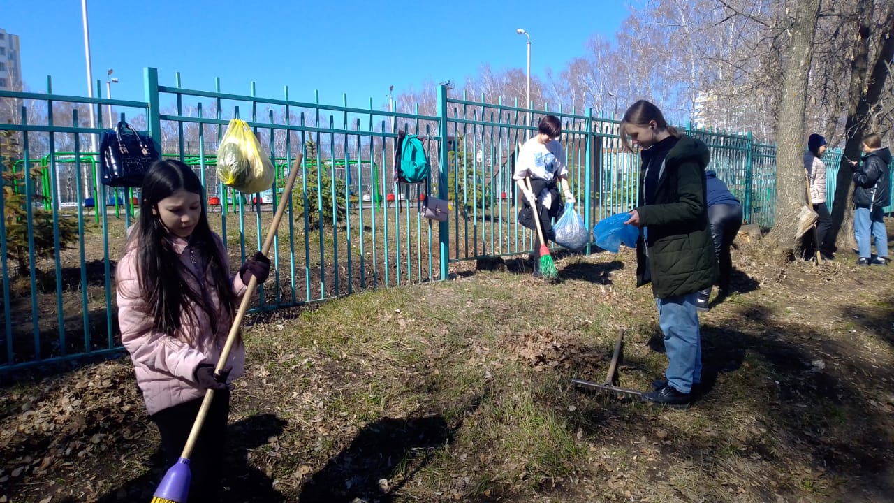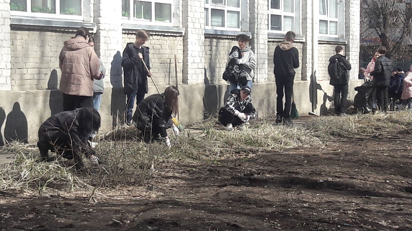 23 апреля учащиеся школы приняли участие в городском субботнике по благоустройству территории