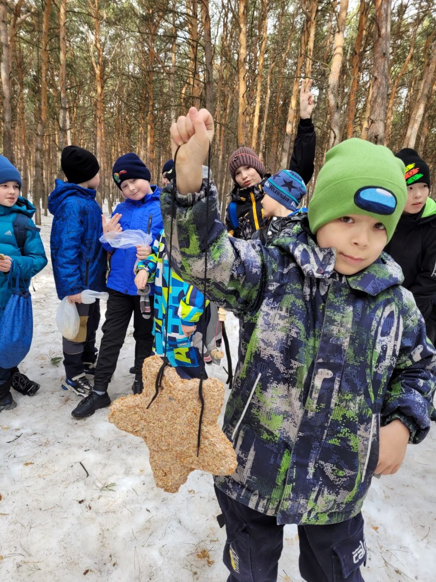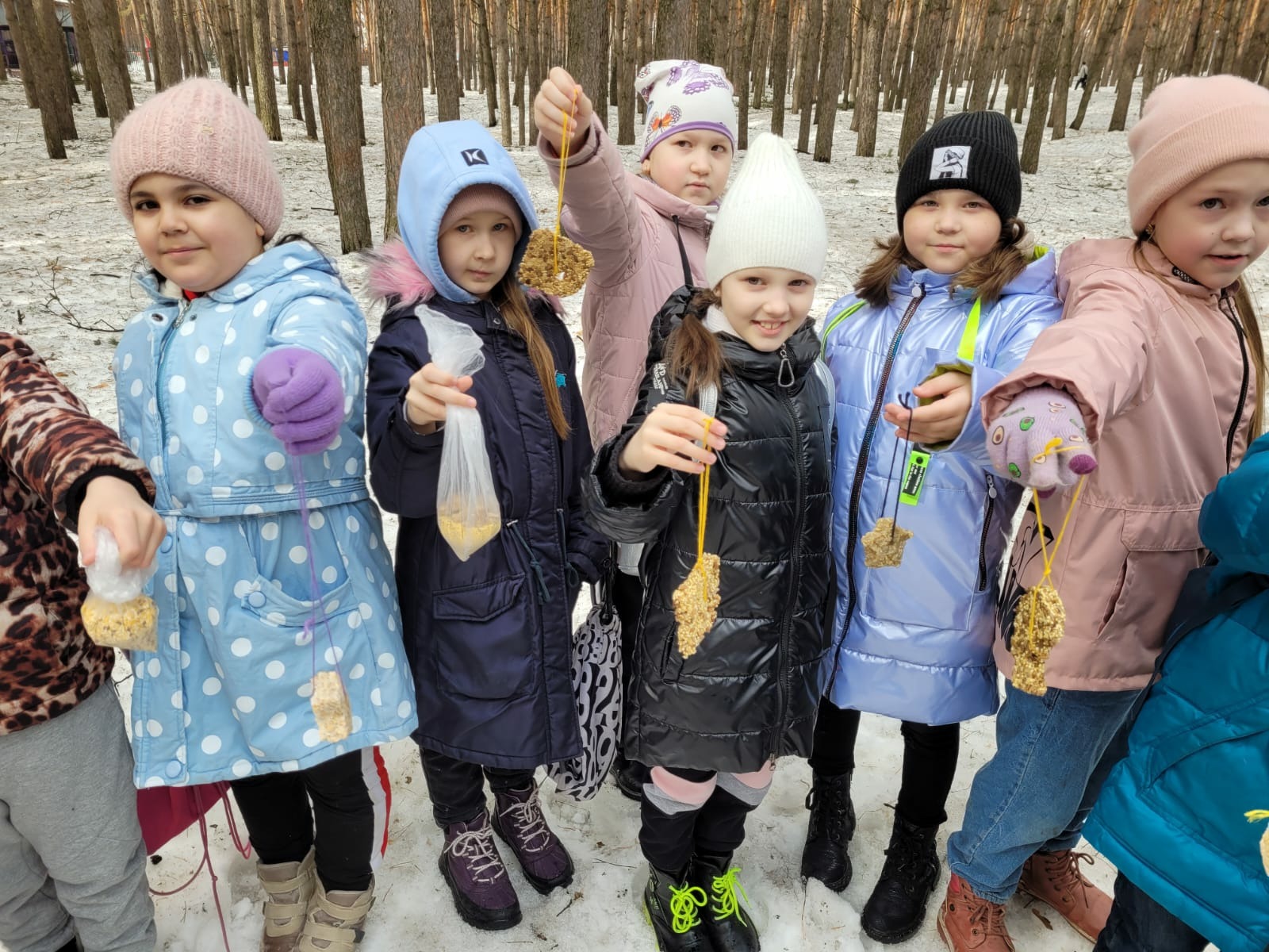Ученики 2 д класса развесили оригинальные кормушки для птиц.
