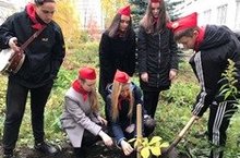 В честь 100-лeтия комсомолу посадка каштанов во дворе школы.