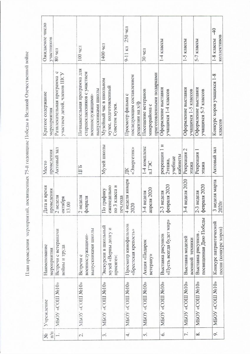 План мероприятий, посвященных 75-й годовщине Победы в Великой Отечественой войне