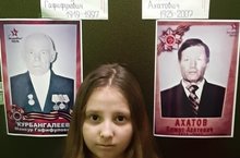 "Мой прадедушка, Айнетдинов Сеитгали Айнетдинович, родился 18 июля 1918 года. В 1939 году был призван служить в армию, служил в Прибалтике в кавалерийских войсках. С первого дня войны был отправлен на фронт. Участвовал в параде на Красной площади 07 ноября 1941 года, посвященном 24-ой годовщине Октябрьской революции.