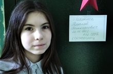 «Моя прабабушка – труженик тыла. Она родилась 8 июня 1928 года, в селе Язлы Арташ Сабиского района, РТ. Когда началась война, ей было 13 лет. Уже в этом возрасте, она пошла работать в колхоз, затем работала в Казани на текстильной фабрике. Работая в тылу, труженики помогали фронту. Тыл и Фронт были едины! » -
