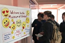 Ученики 9Б класса и учитель английского языка Гафанова Ф.Д. Оформили стенд «Музей смайлов» 25.04.2018