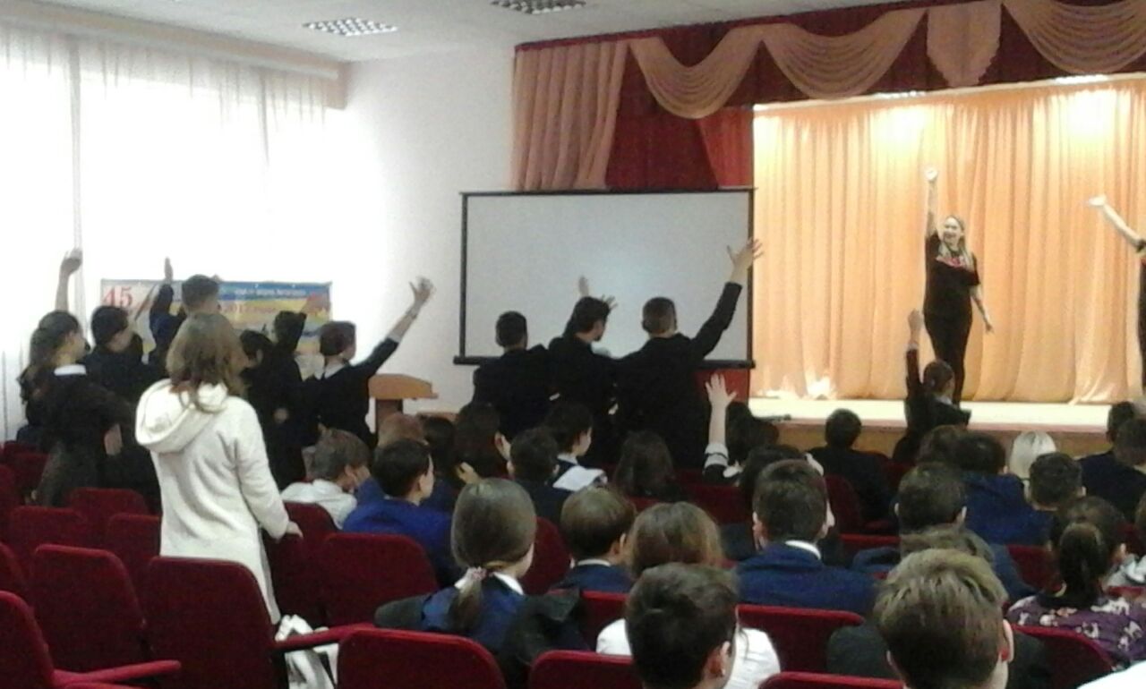 В рамках акции "СТОП ВИЧ/СПИД" 5 декабря в школе прошло необычное мероприятие- "Танцы против СПИДа". Волонтеры показали ученикам 8-9 классов , как при помощи танцевальных жестов выразить свое отношение к этой проблеме.