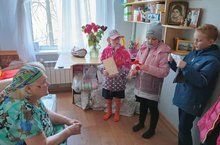"Тимуровский отряд ,, Доброходы,, 1 Б класса посетил Тамару Федоровну Кирсанову . Ребята поздравили ветерана с предстоящими праздниками. Пожелали ей крепкого здоровья . Тимуровцы подарили открытку изготовленную своими руками и весенними цветами. Тамара Федоровна была очень рада", - руководитель отряда Захарова М.В.
