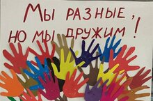 14 ноября проведена акция "Мы разные, но мы дружим". В рамках акции каждый ученик вырезал след своей ладони, окрашенный в разные цвета. После этого ребята оформляли их в форме дерева и солнышка. Вот такие замечательные работы получились! -