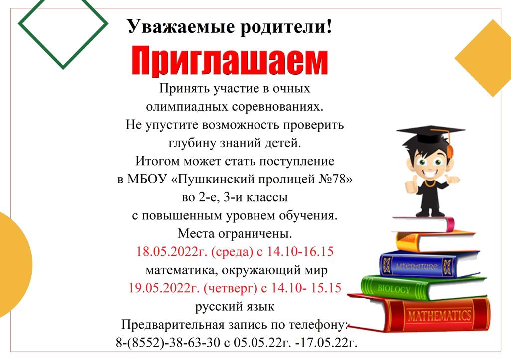 Приглашаем принять участие в очных олимпиадах 04.05.2022