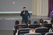 14 марта в Пушкинском пролицее №78 был проведен единый классный час по пожарной безопасности. Был приглашен гость из МЧС.