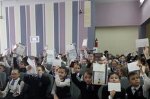 12 апреля в Пушкинском пролицее № 78 была проведена торжественная линейка, посвященная дню космонавтики. На линейке были подведены итоги 3 четверти, награждены отличники, победители конкурсов.