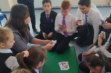 В МБОУ "Пушкинский пролицей №78" прошло массовое знакомство с игрой "Палитра эмоций". На линейке каждому классу был вручен комплект игры. Далее отвественные учителя провели ознакомительные игры с каждым классом, назначив игротехника. Вернувшись в свои классы, ученики продолжили играть, изучая разные правила и способы игры.