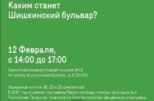 12.02.2017 (воскресенье) в 14.00 в СОШ № 19 (30/20) состоится обсуждение проекта Шишкинского бульвара.