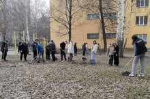В нашей школе еженедельно проводятся "Средники" по уборке территории, где ребята принимают активное участие -