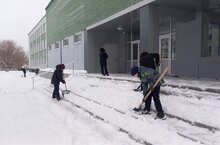 Юные активисты. 5б на уборке снега. Славно потрудились.
