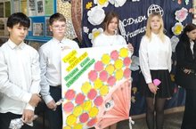 Ученики 5 а класса. под руководством Ершовой Н.В. приняли участие в акции "Поздравь учителя". Утреннее поздравление и встреча учителей в виде "живого коридора".