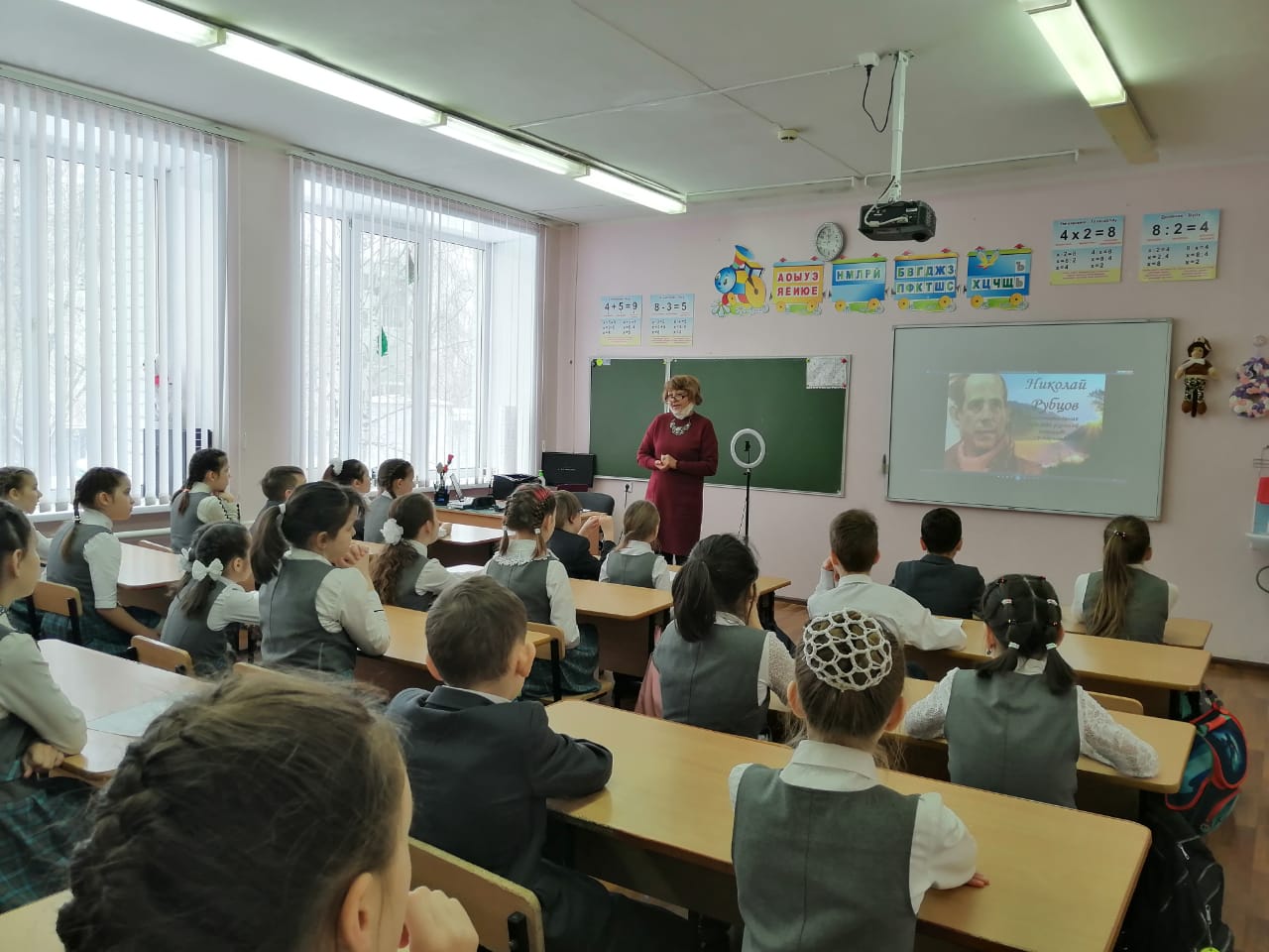 Сегодня учитель начальных классов Смирных И.И. в рамках предметной недели, показала открытый урок по математике в 4а классе с приглашением коллег, в целях обмена опытом между педагогами по подготовке обучающихся к сдаче ВПР. Прослеживались метапредметные связи (математика – окружающий мир), была грамотно организована работа обучающихся в группах, обеспечена занятость каждого учащегося на всех этапах урока. Наглядность была обеспечена путем использования мультимедийного материала. Атмосфера на уроке была доброжелательная, творческая. Поставленные цели реализованы, задачи выполнены. Структура урока соответствует заявленному типу урока.