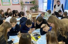 В рамках профориентации, учащиеся 10а класса провели занятие с учащимися 5 «в» класса! Ребята старших классов объясняли, как находить географические координаты по картам!