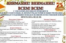 С 3 по 8 февраля 2020 г. в школе прошла Неделя русского языка и литературы, истории и обществознания, посвящённая 75 годовщине Победы в Великой Отечественной войне.