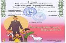 В рамках Республиканской акции "Мин татарча сойлэшэм" 11 апреля 2018 года в ДДТ № 15 состоялся городской тур конкурса "Ин татлы тел- туган тел" по творчеству Габдуллы Тукая. Где в составе 59 команд школ города воспитанники объединения "Родничок" , руководитель педагог дополнительного образования Утябаева Е.М. (учащиеся 3а класса, классный руководитель Хайдарова А.А., 4г класса , классный руководитель Нургалеева А.В.) стали победителями! Молодцы! Так держать!