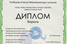 Поздравляем педагога дополнительного образования, руководителя объединения "Родничок" Утябаеву Е.М. с высокой наградой МОиН РТ и Министерства культуры РТ по итогам работы в Республиканской акции "Мин татарча сойлэшэм" за сохранение и развитие родного языка 18.03.2017