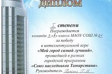Поздравляем команду 3в класса, руководитель Патенко Г.М., с Победой в интеллектуальной игре "Мой город самый лучший" 25.10.2015