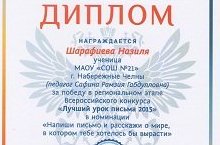 Поздравляем Шарафиеву Назилю, ученицу 11 класса,(педагог Сафина Р.Г.), с Победой в региональном этапе Всероссийского конкурса "Лучший урок письма 2015" 16.10.2015