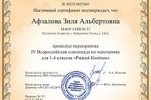 Поздравляем призеров IV Всероссийской олимпиады по математике, русскому языку, окружающему миру Дереженко Эвелину, Корчикина Эдуарда, Ситникову Яну, Мазур Артема (учитель Афзалова З.А.) Молодцы! 23.12.2014
