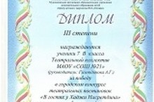 Диплом III степени в городском конкурсе театральных постановок 28.02.2014