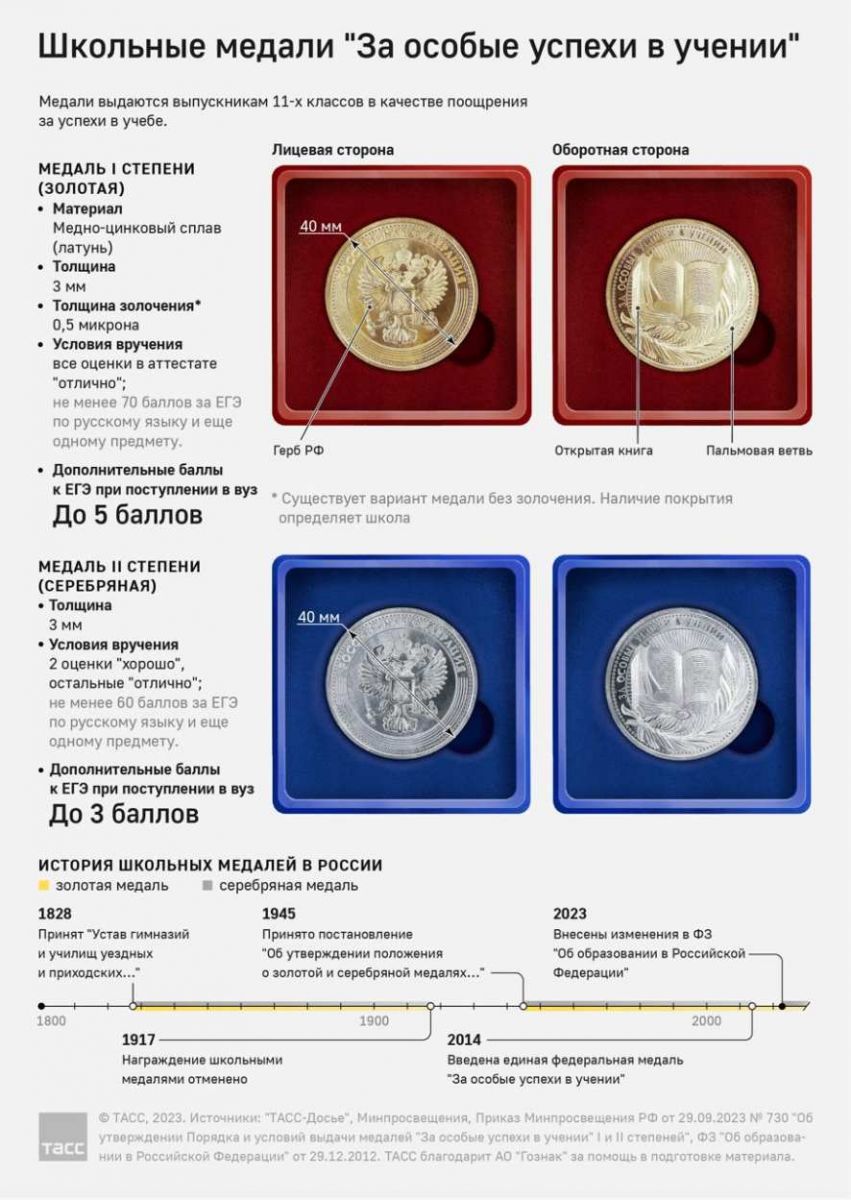 Школьные медали "За особые успехи в обучении"