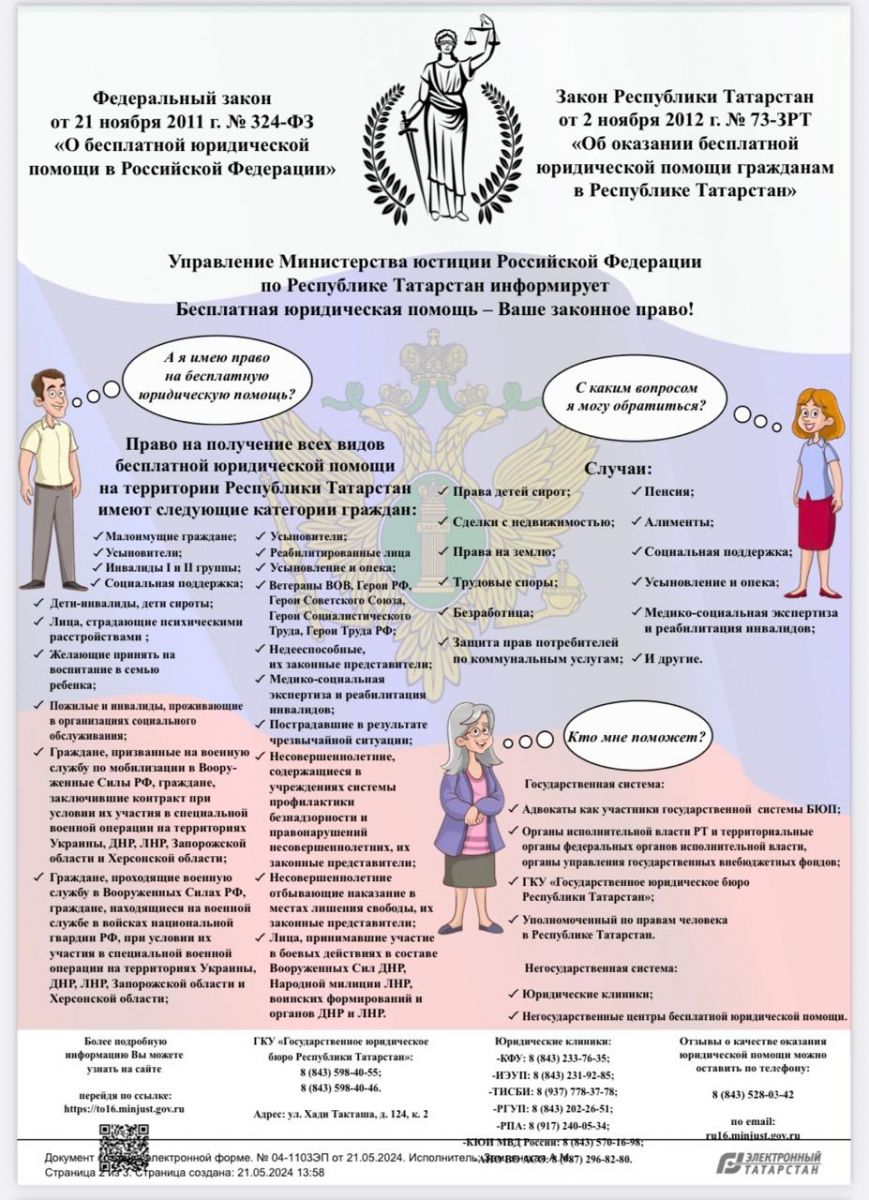 Бесплатная юридическая помощь гражданам Республики Татарстан 29.05.2024