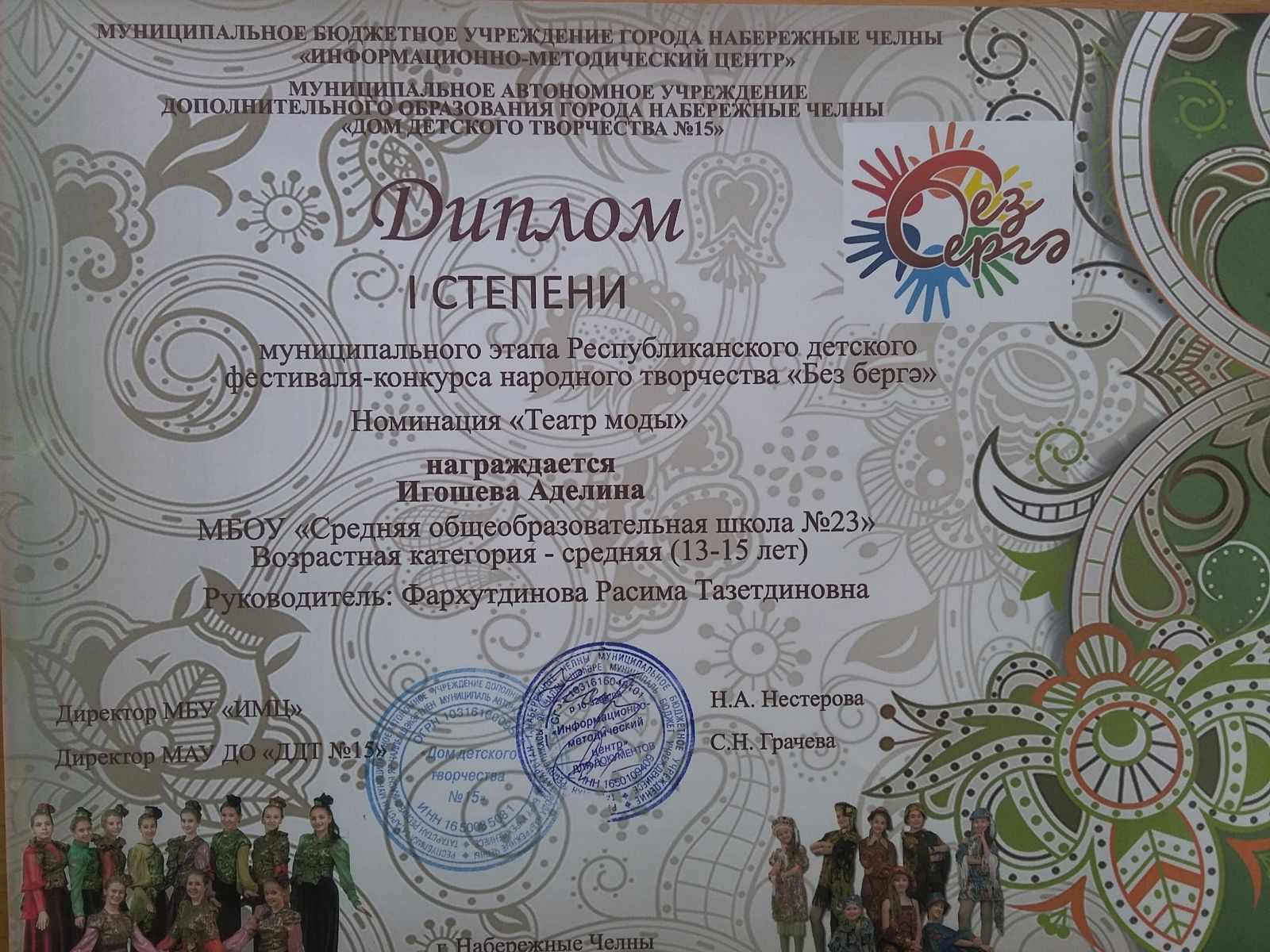 Игошева Аделина - Диплом 1 степени в номинации "Театр моды". фото