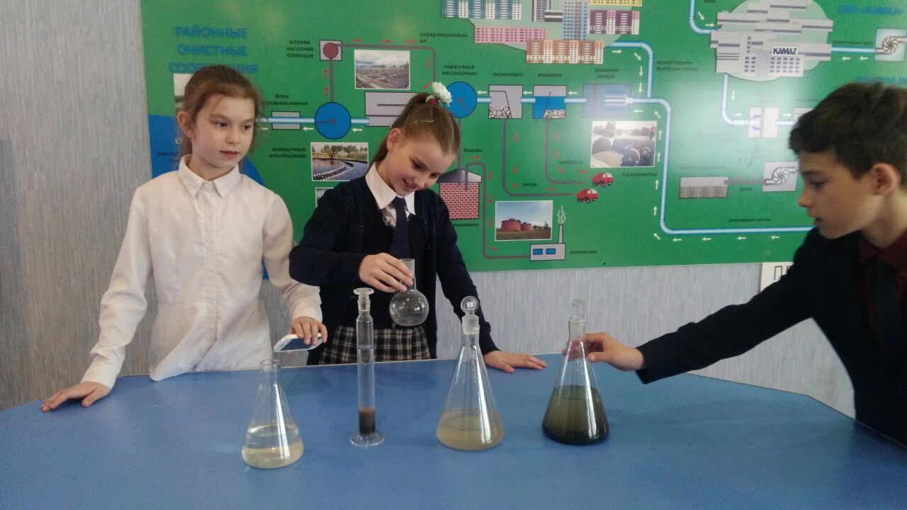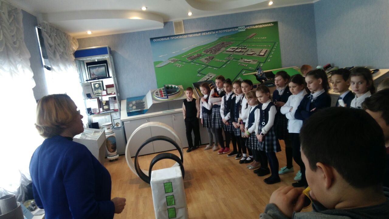 Опубликовано: 17.04.2018Ученики 3Б класса посетили Музей Воды, где познакомились с историей первых водопроводов г.Набережные Челны, узналиустройство систем водоснабжения. Большой интерес у учеников вызвали действующие макеты сооружений, схемы технологических процессов очистки природной и сточной воды на больших экранах.