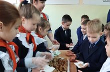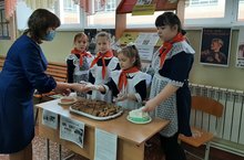 В годовщину полного снятия блокады Ленинграда, ученики нашей школы приняли участие во Всероссийской акции памяти "Блокадный хлеб". Символом акции является кусок чёрного хлеба массой 125 г. - это была норма выдачи хлеба на человека во время блокады. Такими кусками хлеба сегодня угощали тимуровцы отряда «Звёздочки» учащихся начальных классов. На столе были прикреплены листовки, с которых ученики могли узнать о составе блокадного хлеба.