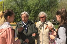 8.05.19 г. в Парке Победы члены школьного самоуправления раздавали Георгиевские ленточки прохожим и поздравляли с 74-ой годовщиной Победы в Великой Отечественной войне.