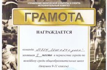 Поздравляем команду школы, занявшую первое место в первенстве города по волейболу среди девушек 9-11 классов