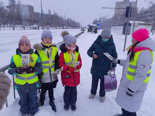 Сегодня 3В класс вышел в рейд Юных инспекторов дорожного движения на Остановку Аптека (пересечение Проспекта Сююмбике и Автозаводского)