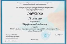 Поздравляем Трофимова Владислава, ученика 3 А класса с Победой в конкурсе!.Молодец!