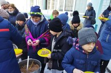 В конце праздника всех угостили вкусной кашей и было чаепитие.