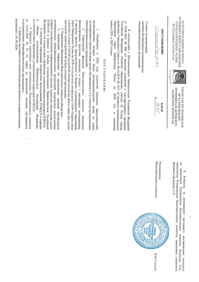 Постановление Исполнительного комитета от 29 октября 2020 года № 5635 «О мерах по организации питания обучающихся муниципальных общеобразовательных учреждений»